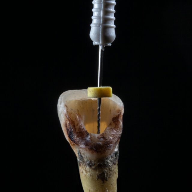 専用の器具を使って、根管内の汚染物を丁寧に取り除きます。