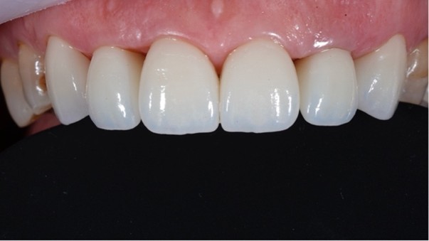 歯の色、形、傾きが改善され、自然で美しい前歯になりました。